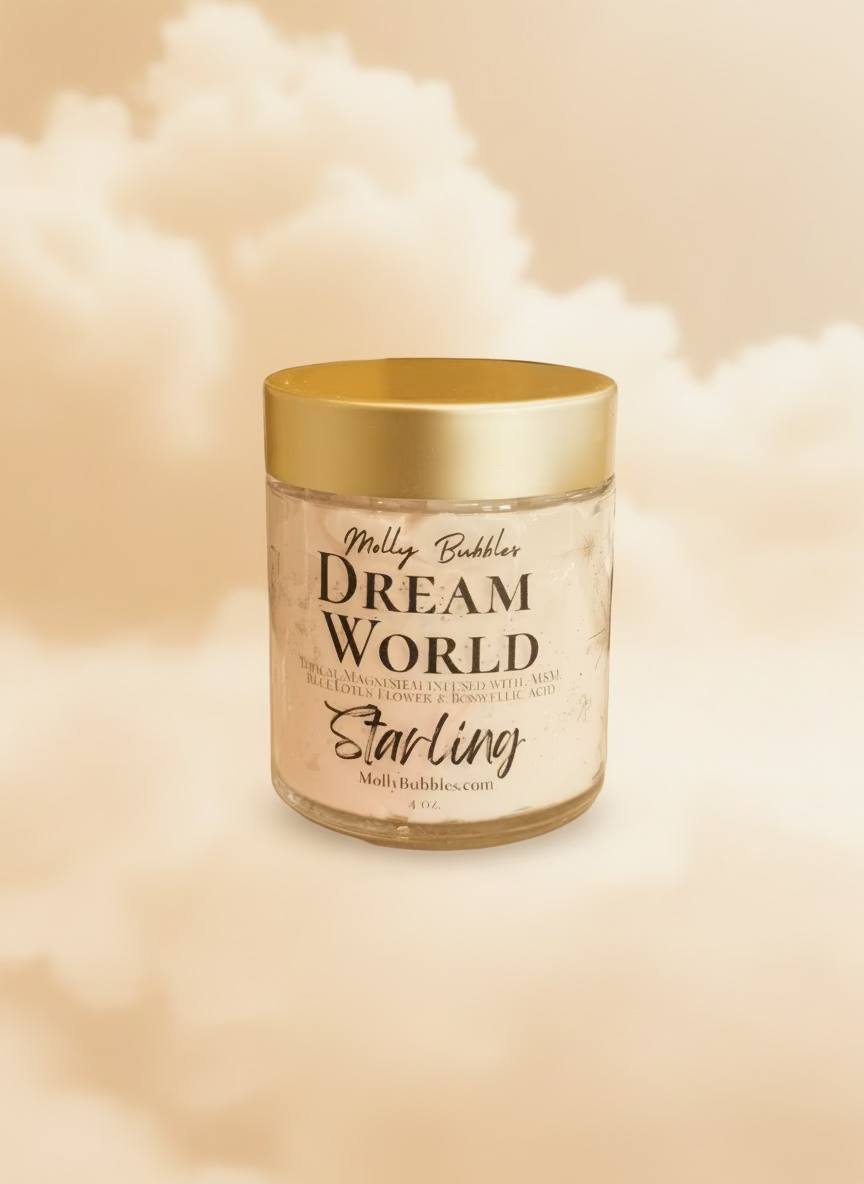 Dream World is crafted to support your everything: sleep, dreaming, pain relief, skin restoration, and those subtle energetic shifts you feel but can’t explain. Let tension melt away. This blend of magnesium, MSM, and soothing herbs invites calm, comfort, and a dreamy night’s rest.