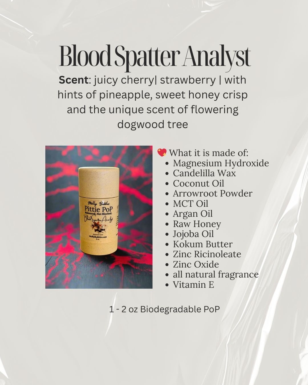 Pittie PoP "Blood Spatter Analyst” (juicy cherry| strawberry | with hints of pineapple, sweet honey crisp and the unique scent of flowering dogwood tree) *all-natural fragrance*